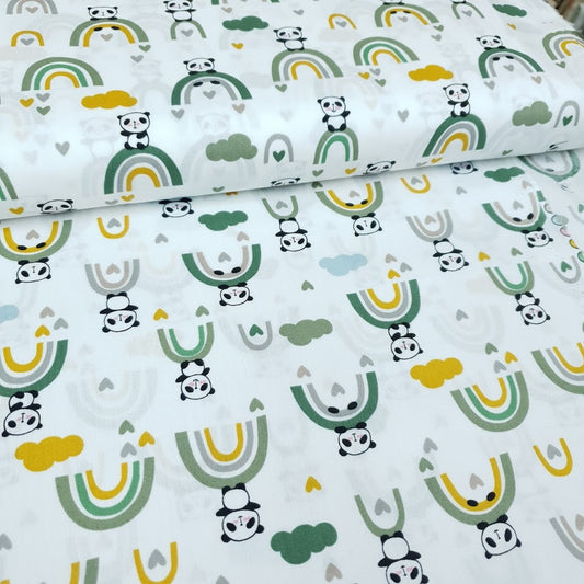 Baumwollstoff - Pandas - grün gelb