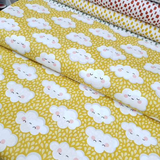 Baumwollstoff - Wolken - gelb
