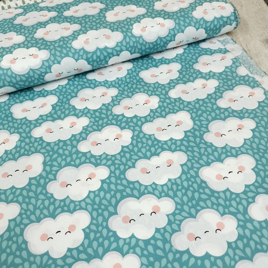 Baumwollstoff - Wolken - türkis