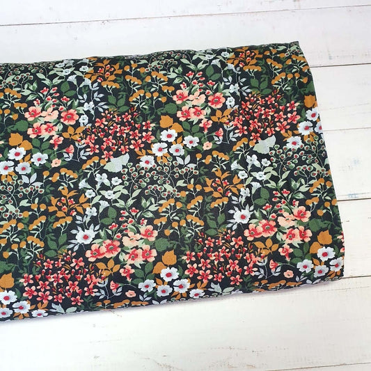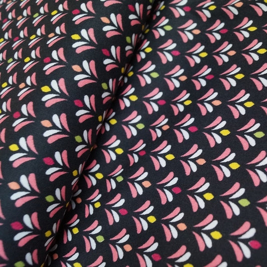 Baumwollstoff - Bunte Fiores - schwarz