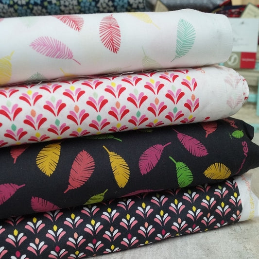 Baumwollstoff - Bunte Federn - schwarz